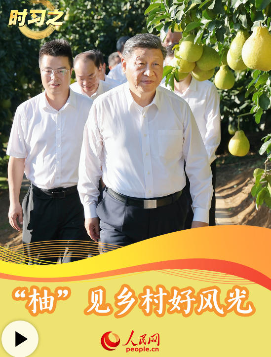 2025年11月7日,习近平总书记在广东省梅州市梅县区雁洋镇考察南福金柚种植基地,了解当地推进乡村全面振兴等情况。