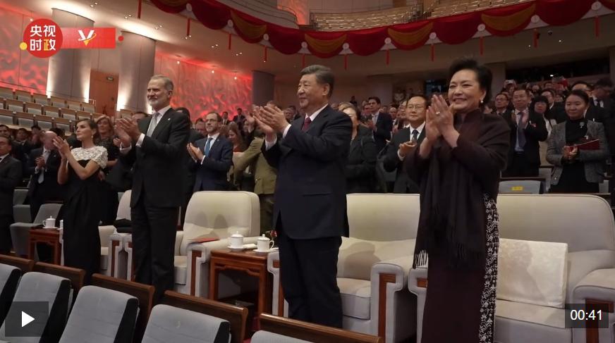 11月12日晚,国家主席习近平和夫人彭丽媛在北京国家大剧院同西班牙国王费利佩六世夫妇一同观看西班牙皇家剧院音乐会。