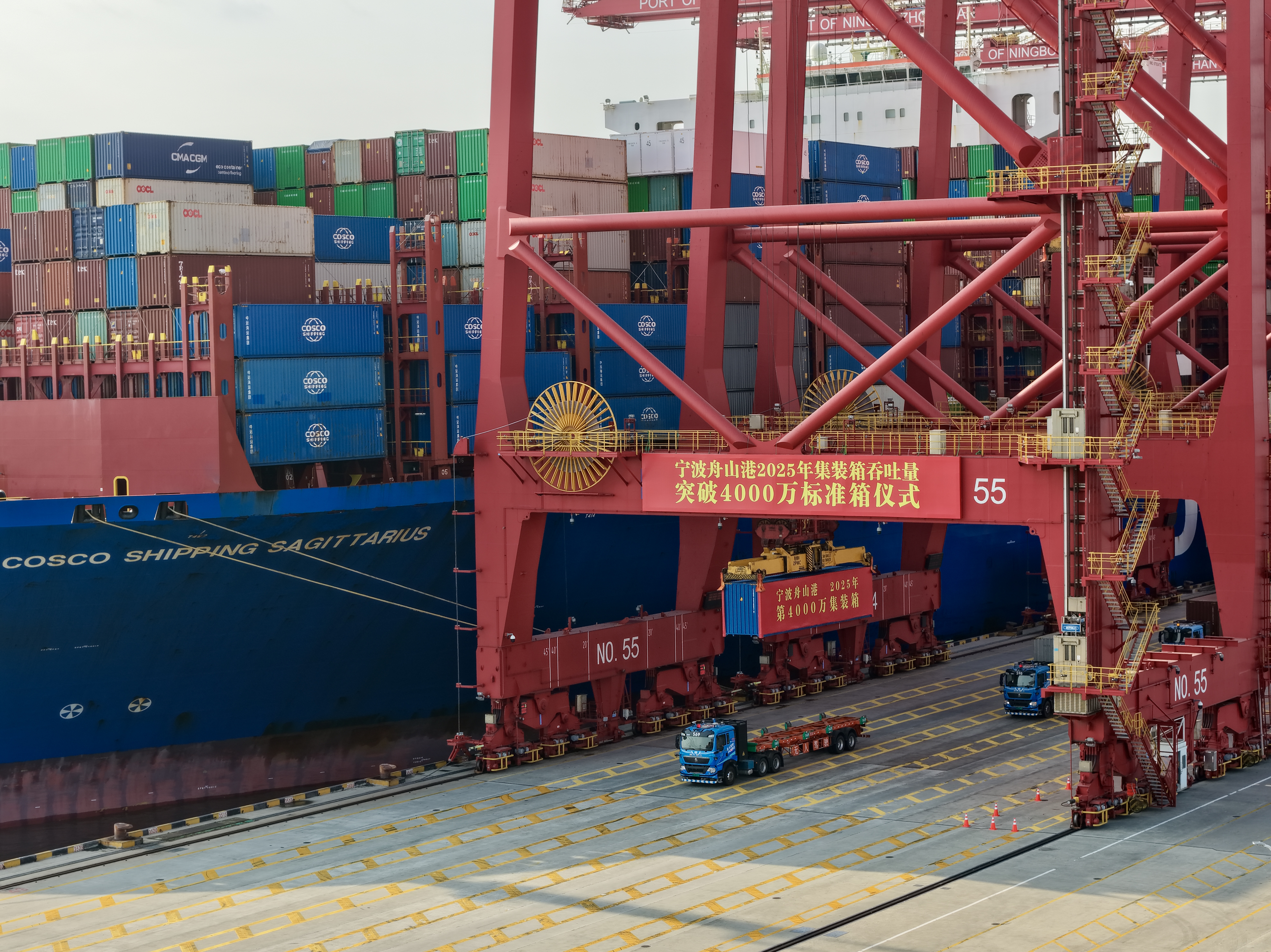 从量的积累到质的飞跃,宁波舟山港的增速写下了全球港口发展的“中国速度”:从1000万标箱到2000万标箱,用了7年;从2000万到3000万,耗时6年;而从3000万冲刺4000万,仅用短短4年。宁波舟山港由此成为全球前五大港口中近十年来增速最快、增量最大的港口。这一里程碑背后,是浙江推进世界一流强港建设的坚实步伐,更是中国外贸韧性的生动体现。