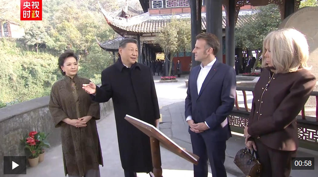 12月5日,国家主席习近平在四川省成都市都江堰同法国总统马克龙进行友好交流。