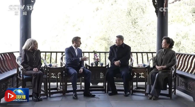 习近平夫妇邀请马克龙夫妇共进午餐,继续深入交流。