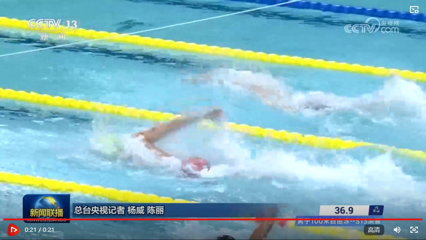 央视网消息(新闻联播):全国第十二届残疾人运动会暨第九届特殊奥林匹克运动会12月10日继续进行,全天共产生121枚金牌。上午进行的游泳比赛,共刷新五项全国纪录,其中广东队的黄学亮打破男子100米自由泳S13级(视力障碍)全国纪录,夺得冠军。