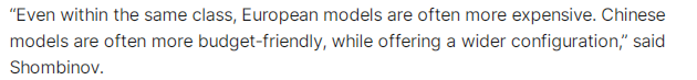 文章援引哈萨克斯坦一家汽车及配件贸易网站新车部门负责人亚博·肖姆比诺夫(Yerbol Shombinov)的话表示, “在哈萨克斯坦汽车市场上,中国汽车品牌与许多银行有合作,可以提供相当有竞争力的购车贷款政策”。此外,中国汽车的整车定价也很有优势。肖姆比诺夫表示,“即使在同一级别中,欧洲品牌通常也更贵。中国车型通常更经济实惠,同时提供更多配置让消费者选择。”