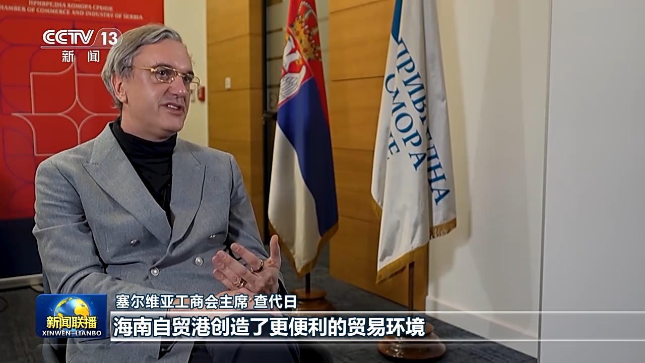 塞尔维亚工商会主席 查代日:海南自贸港创造了更便利的贸易环境,我认为,包括塞尔维亚企业在内,每一家有意在亚洲发展的欧洲公司,都有兴趣把握这一新机遇。中国坚持高水平对外开放,为充满不确定性的世界带来了确定性,促进我们携手共进,共同发展。
