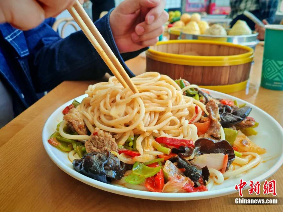 热气腾腾的拉条子出炉。乌鲁木齐晚报全媒体记者 石磊 摄