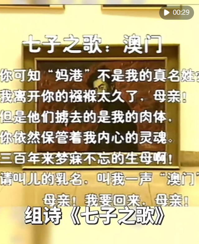 26年前的那一夜!澳门回归,从《七子之歌》说起