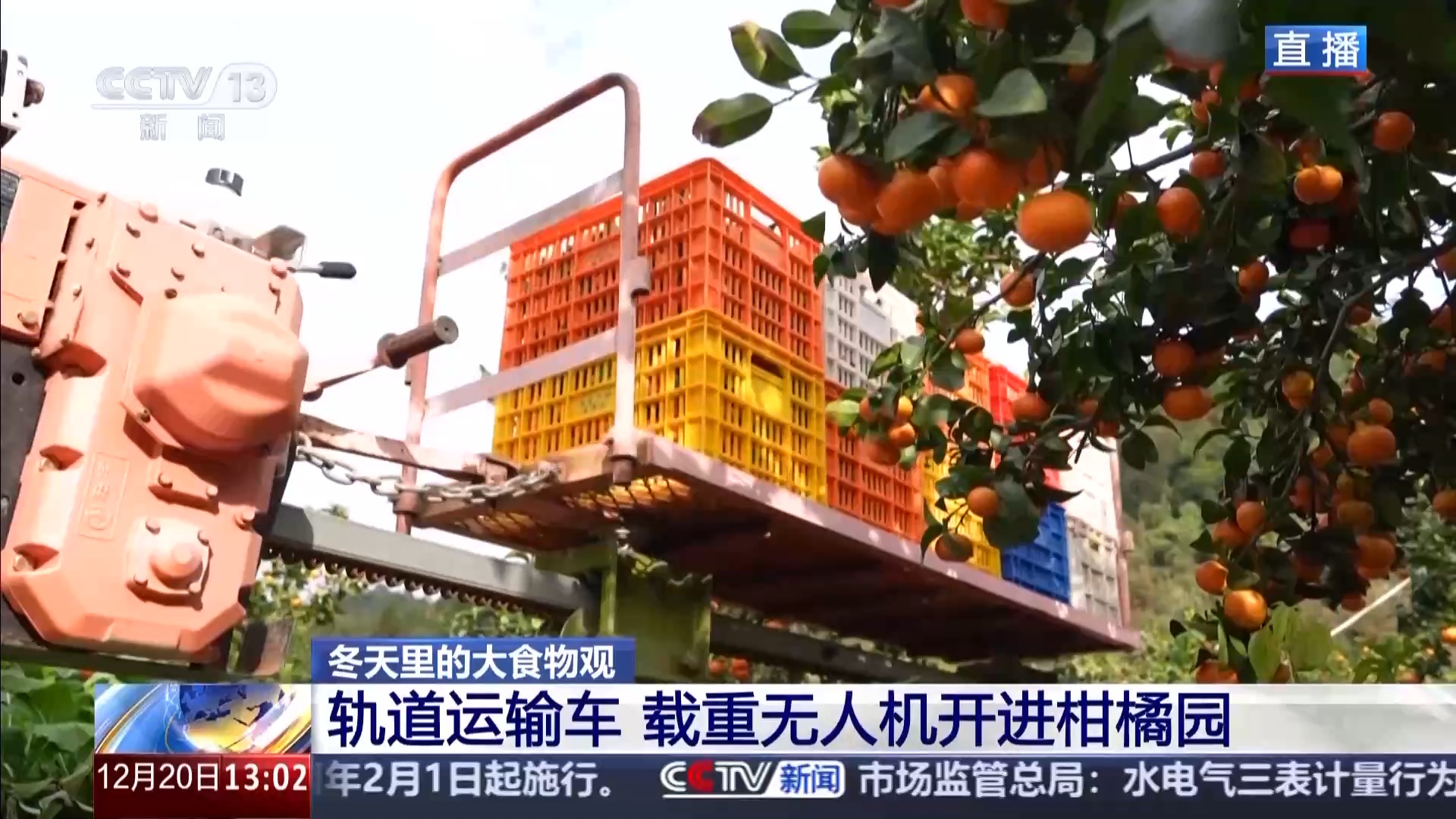 轨道运输车 载重无人机开进柑橘园