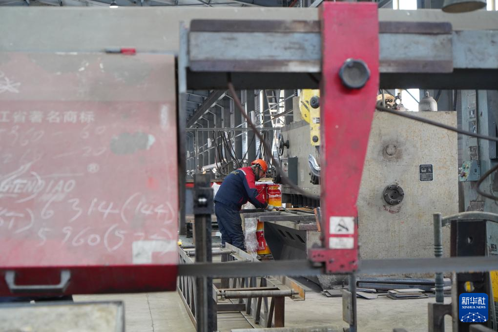 12月8日,在俄罗斯犹太自治州首府比罗比詹市,一家从事钢结构材料生产的中资企业的员工正在工作。新华社记者 刘恺 摄
