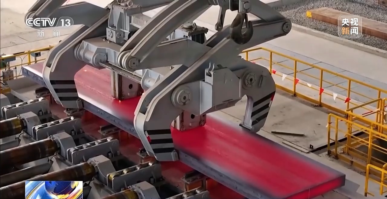 这里就是近零碳钢铁产线最后一道工序,第一炉钢水浇筑出的第一块钢板正式出炉。此刻它的表面温度高达700℃,热浪袭人,通体红亮。它每年可以生产180万吨低碳排放钢,完全满足最严苛的欧盟标准,用它生产的汽车、轮船、家电等产品将会大幅地拓展国际市场,获取更高的商品溢价。