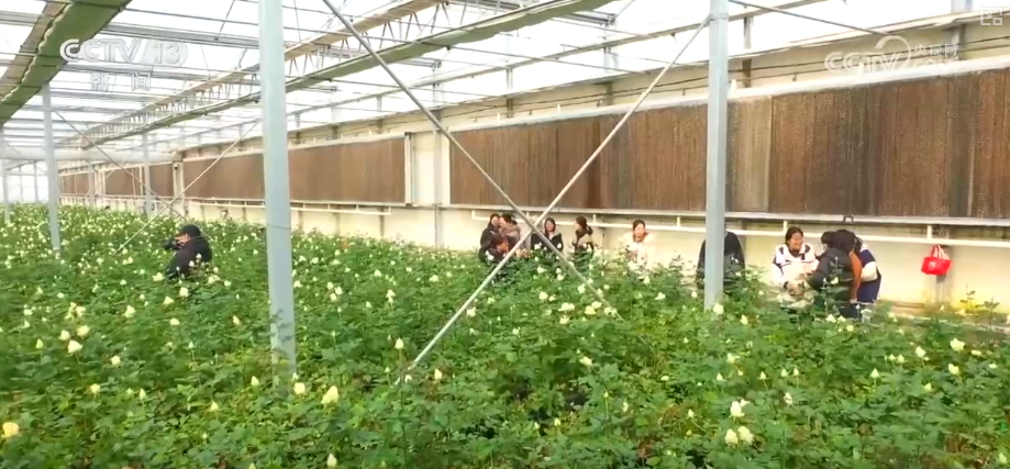 在河北邱县,玫瑰产业园的玫瑰鲜切花也迎来了销售旺季。采摘工人每天工作9个小时采摘玫瑰花,日销玫瑰超8万枝,直供京津冀市场。