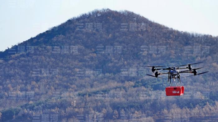 2025年12月24日,大连金普新区,无人机配送模式“飞”越拥堵。