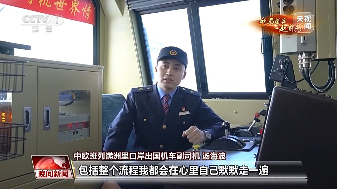 中欧班列满洲里口岸出国机车副司机 汤海波:我感觉我担当出国任务最快乐的时候就是通过国门的那一刻,那种自豪感由心而生。