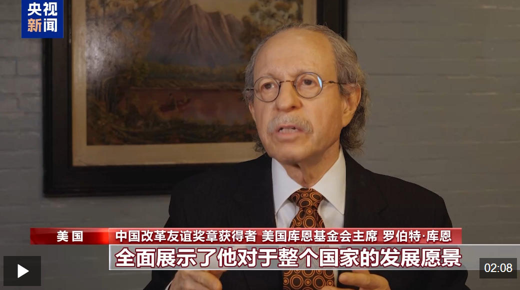 中国改革友谊奖章获得者 美国库恩基金会主席 罗伯特·库恩:在听完习近平主席的演讲后,最令我印象深刻的是,他在很短时间里精辟阐释了很宏大的主题。从“寻梦”到“中国式现代化”,再到“高质量发展”“新质生产力”以及“科技创新”,我们能看到,习主席用很有条理的方式,全面展示了他对于整个国家的发展愿景。