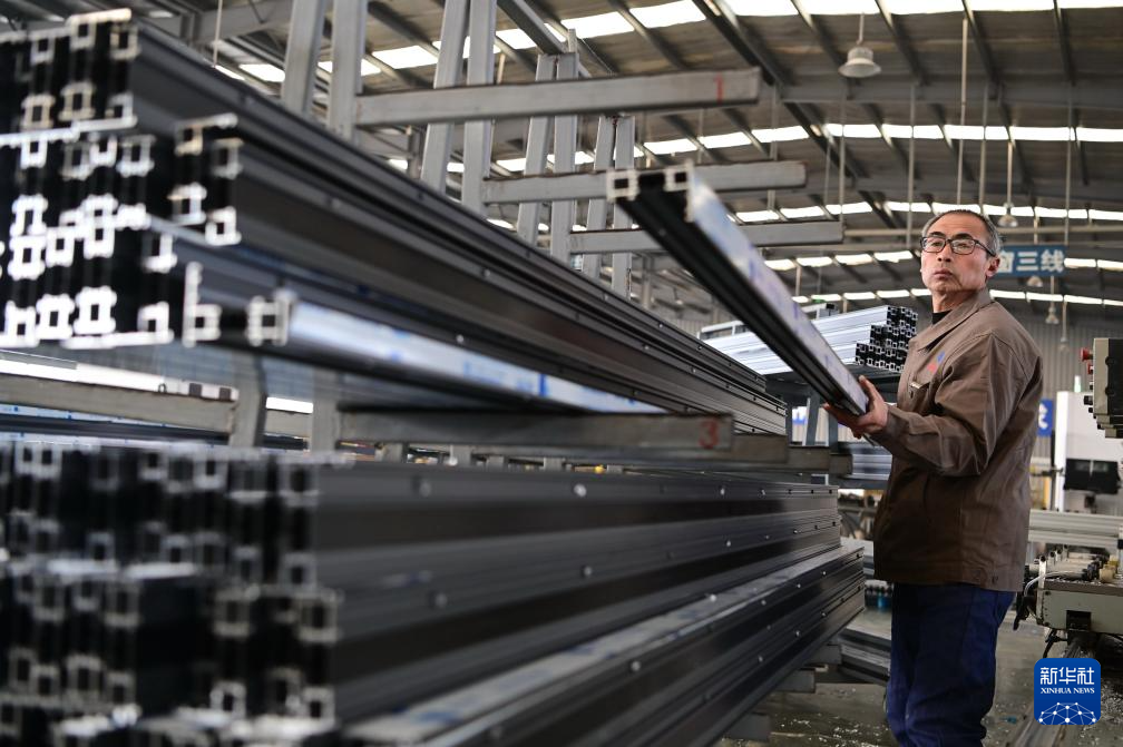 1月5日,位于河南省沁阳市的河南兴发幕墙门窗有限公司工人在生产铝合金门窗。
