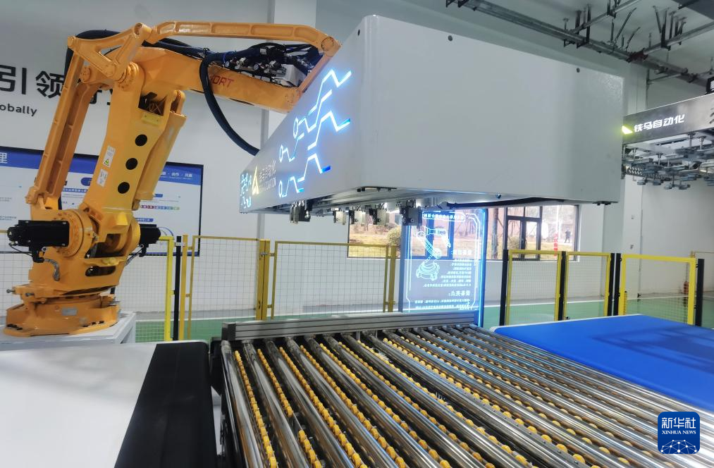1月4日,在四川达州东部经开区麻柳镇的追觅希瑞智能科技(达州)有限公司生产线上,机器人在赶制出口智能床订单。