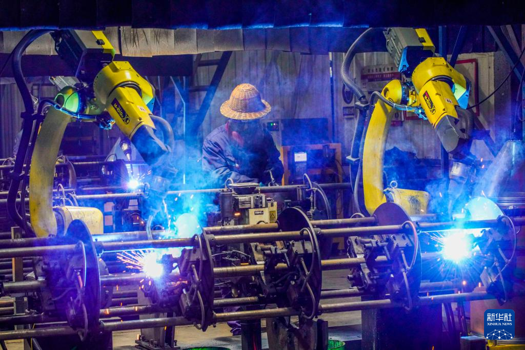 1月5日,工人在河北省乐亭县经济开发区一家脚手架企业焊接车间工作。