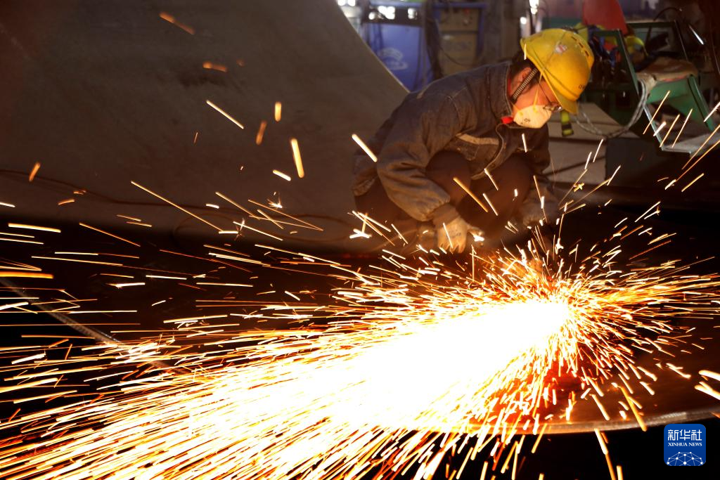 1月5日,江苏泰州口岸船舶有限公司厂区内,工人进行打磨作业。