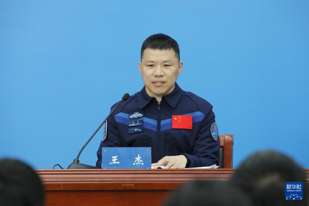 1月16日,航天员王杰在回答记者提问。新华社记者 李明刚 摄
