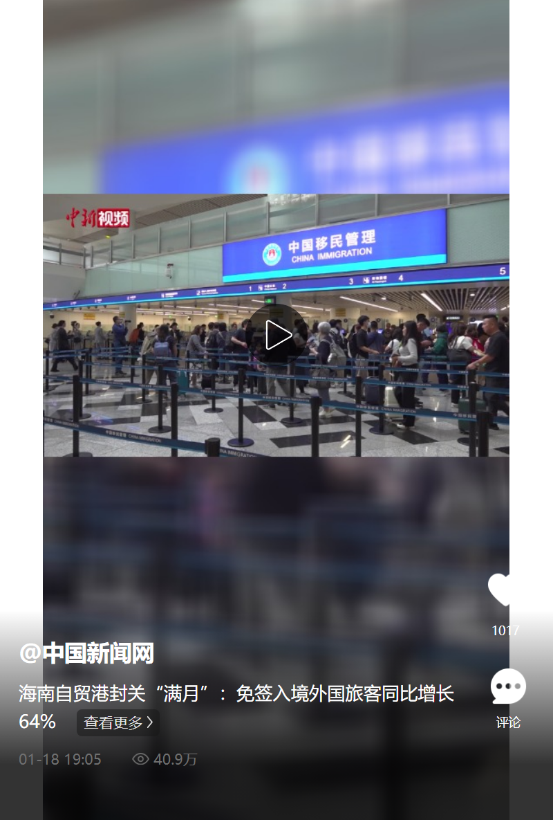 海南自贸港封关“满月”:免签入境外国旅客同比增长64%