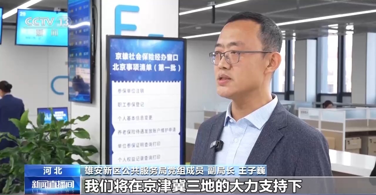 雄安新区公共服务局党组成员 副局长 王子巍:下一步,我们将在京津冀三地的大力支持下,常态化联动北京、河北的人社部门,上门办理参保登记,雄安一卡通等服务。