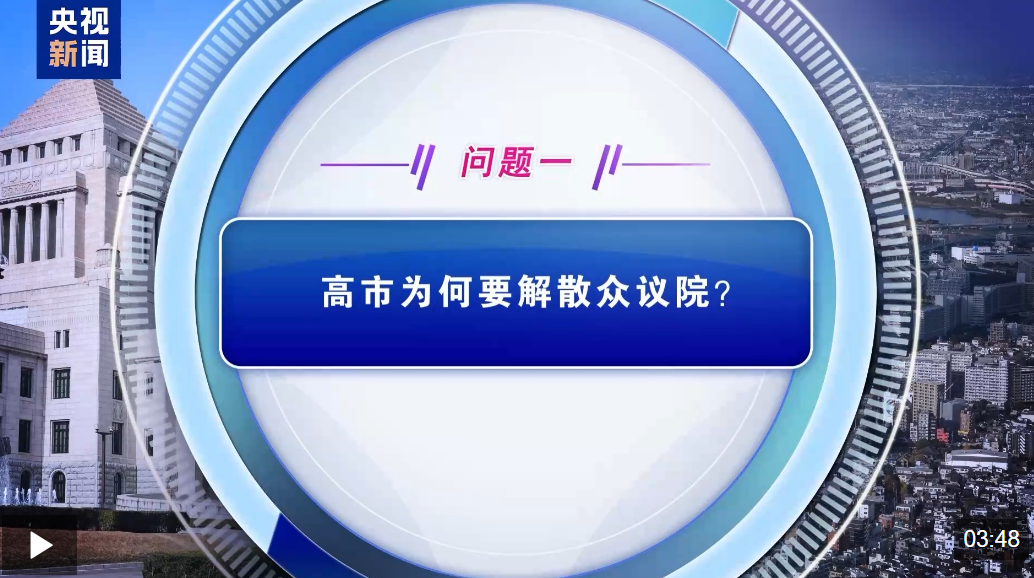 中国社科院日本研究所助理研究员 孟明铭:高市早苗解散国会重新进行选举的行为,是其权衡了机遇和风险后所采取的一次政治豪赌。目的主要有以下几点: