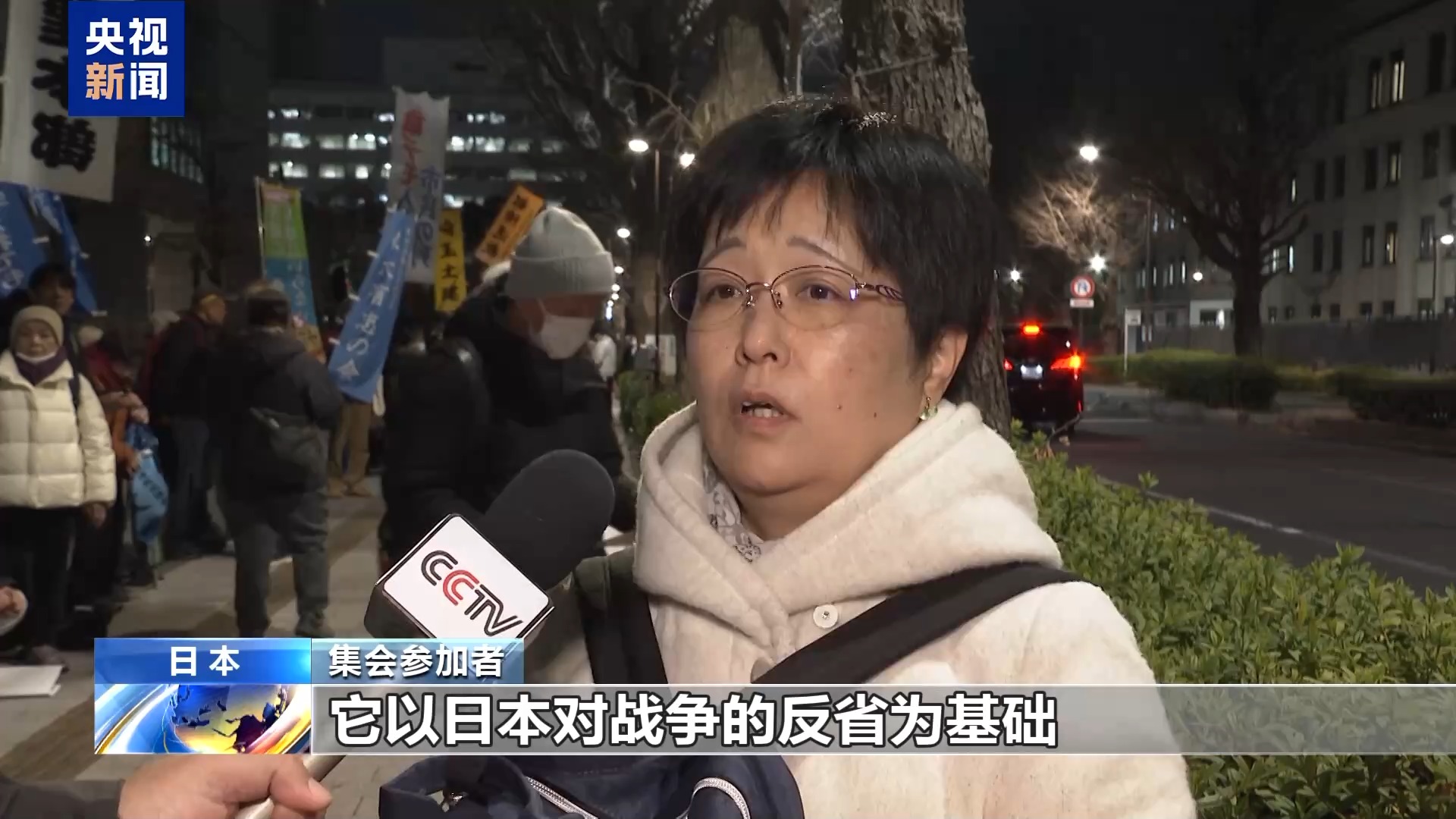 集会参加者:日本是拥有宪法第九条的国家,它以日本对战争的反省为基础,规定不再发动战争。作为日本的首相,本应挺起胸膛捍卫和平才对。
