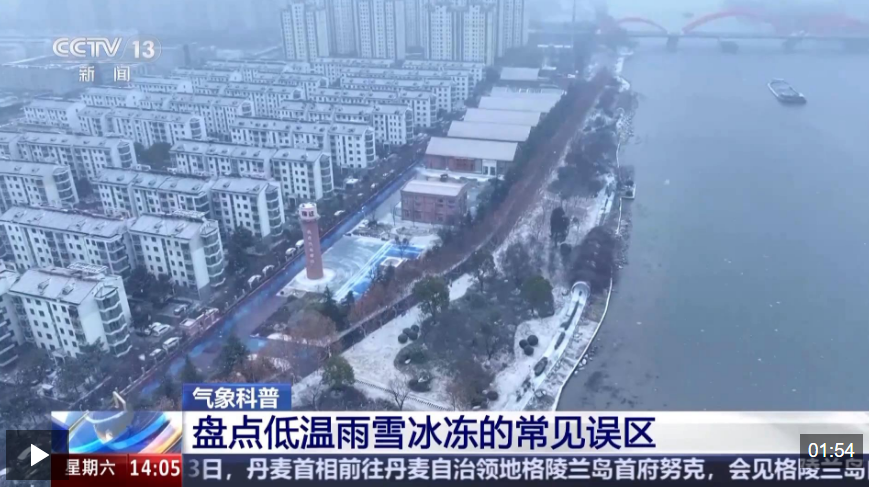 国家预警信息发布中心副首席 杨继国:天气预报中的“气温”指的是距地面1.5米高的百叶箱中测得的空气的温度,而非物体表面的实际温度。物体表面温度会受到辐射冷却、风寒效应、物体材质等多重因素影响,往往与气温存在差异。例如在冻雨天气过程中,近地面气温可能在0℃以上,但道路、桥梁、电线等物体受到辐射冷却影响,表面温度可能会降至0℃以下。此时,过冷水滴落下会立即在这些物体表面冻结成冰。