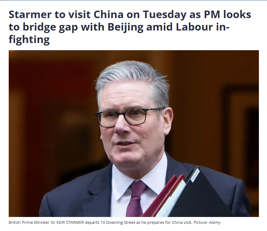 伦敦广播公司(LBC)报道称,斯塔默此访标志着英国政府努力与北京建立桥梁。报道援引来自唐宁街十号的消息人士的话称,英国政府决心采取“坚定和成熟”的态度发展与中国的关系,“把头埋进沙子里,假装中国无关紧要,是鲁莽的。那会让英国变得更贫穷、更不安全。”