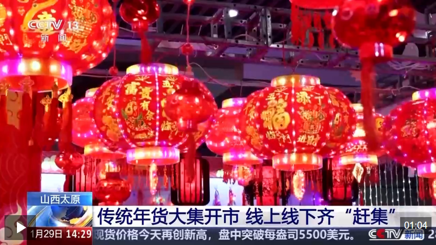春节临近,山西太原的传统年货大集昨天(28日)开市,6000余种商品吸引消费者前来选购,除了现场购物,消费者还可以在大集的直播间下单,方便消费者的同时,也拓宽了展商的销路。