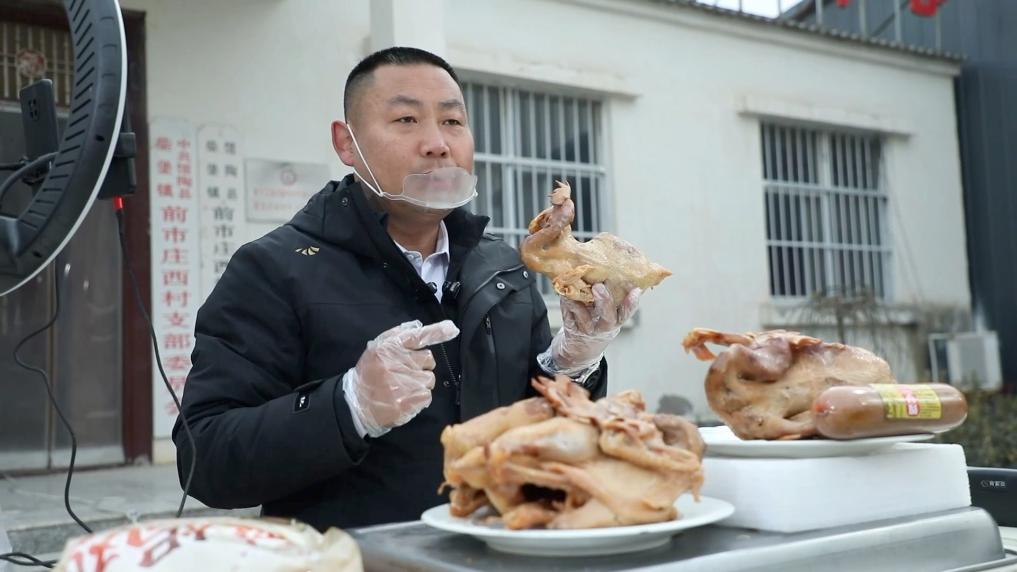 近日,河北省邯郸市馆陶县前市庄西村党支部书记袁邯生的直播间里,金黄诱人的盐焗鸡刚上架,订单就不断跳动,近四小时直播就能卖出近1000只鸡。