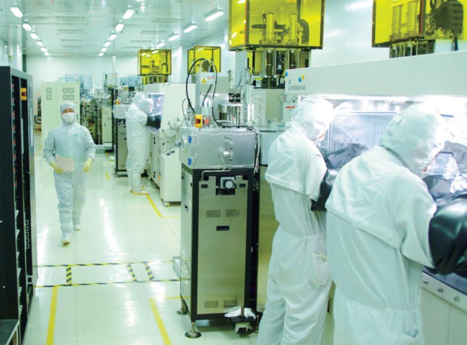 陕西莱特光电材料股份有限公司千级超净无尘室内,工程师在操作蒸镀机,进行OLED发光器件的制备和封装。 受访者供图