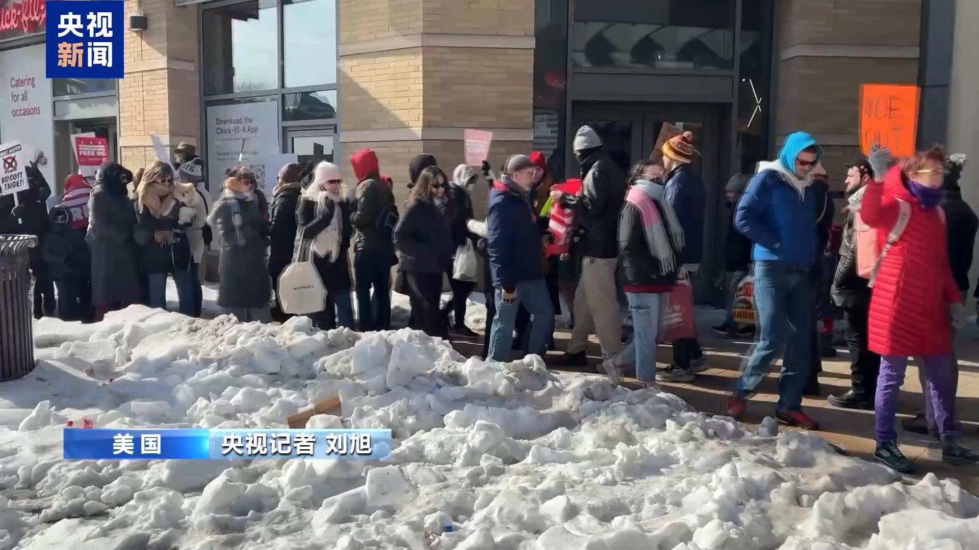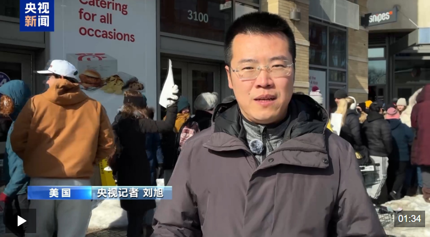 央视记者 刘旭:我现在是在美国首都华盛顿特区的一处居民区。这里人口密集,居住着大量不同族裔的移民。这里也有大量的商业活动。今天尽管室外温度在零下10摄氏度左右,在我身后仍然有上百名社区居民在这里集会。