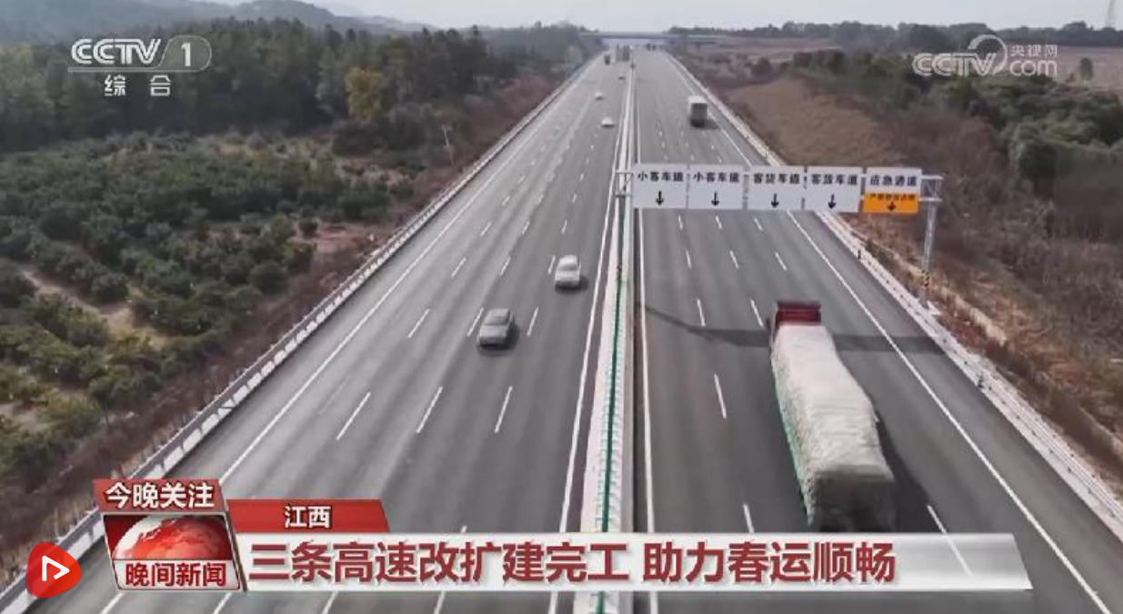 物畅其流,人畅其行。在江西省,樟树至吉安高速等三条高速改扩建具备通车条件,由四车道改为八车道,1月31日起开放通行。通行能力增长70%以上,基本形成京港澳、沪昆“大十字”八车道高速公路主通道格局,为春运提供高效通行保障。