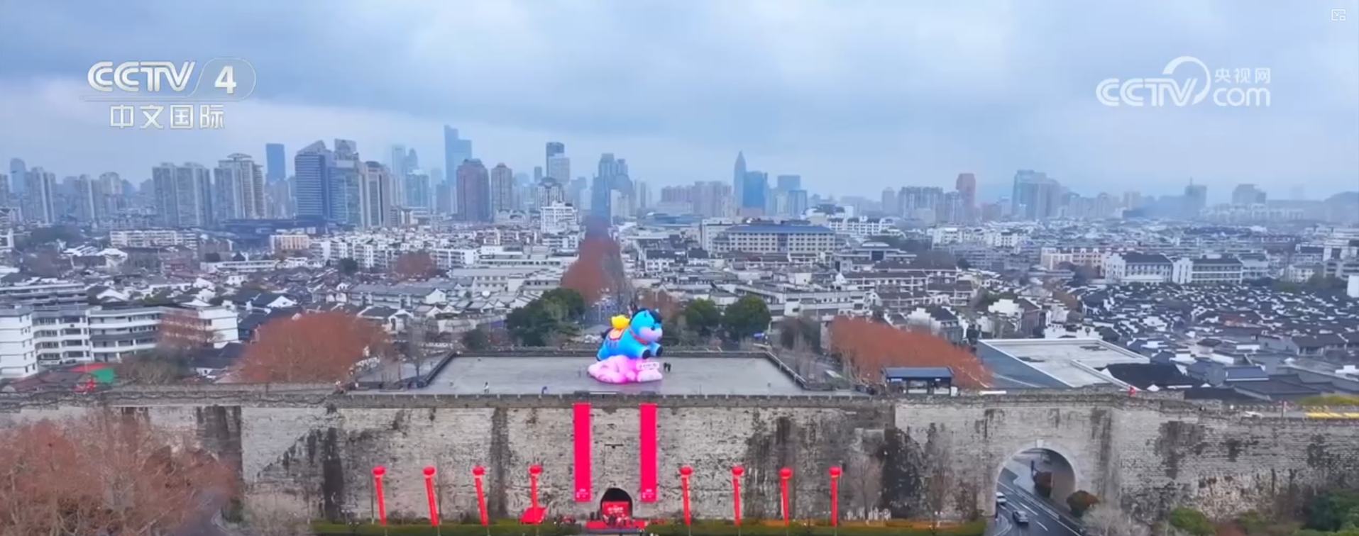 江苏南京:城门挂春联 迎春年味浓