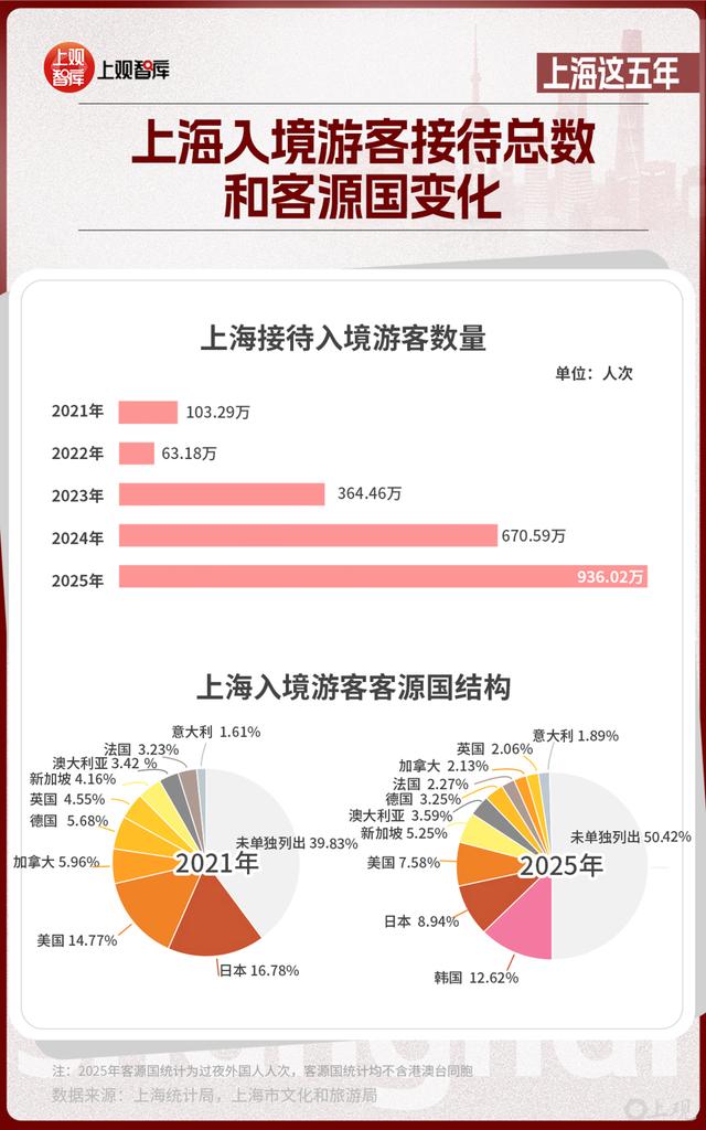 开放的上海,在全球的魅力日益提升。乘着免签政策东风,上海在入境游赛道走出强劲上升曲线,“中国入境游第一站”吸引力持续攀升。去年全年,上海接待入境游客总量936.02万人次,创下历史新高,成为全球游客感知中国文化、体验都市魅力的首选目的地。