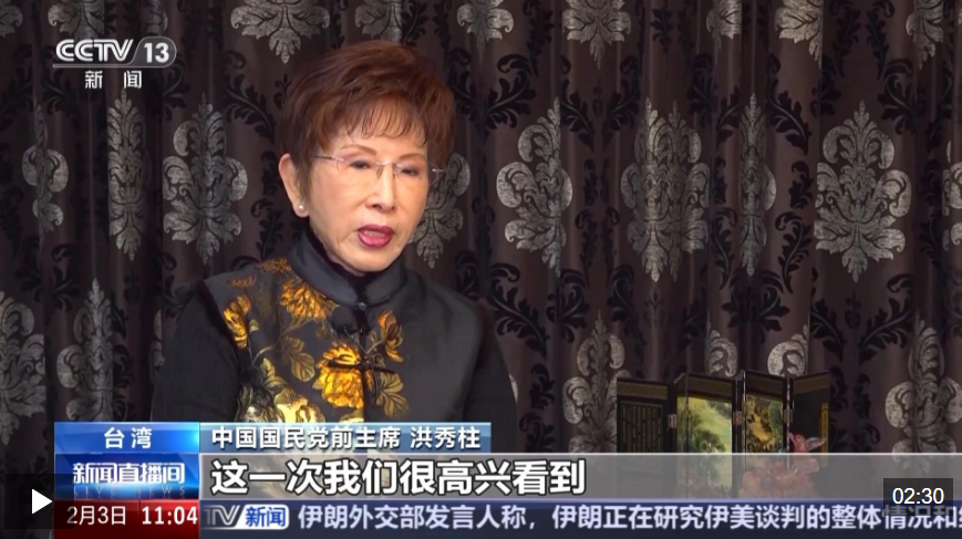中国国民党前主席 洪秀柱:以前说两岸之间求同存异,我们更希望进一步叫作求同化异。大陆也释放了很多两岸融合发展、和平发展的政策。在这方面还要加把劲、共同努力,把一切障碍排除掉。不管是从气候的变迁、能源的政策,先从这些问题谈起,由经到政,由易到难。透过各种渠道,能够让台湾很多的老百姓真正了解到两岸一家是互利共荣的,为我们未来更好的愿景作出更多的努力,也给老百姓很多的希望。