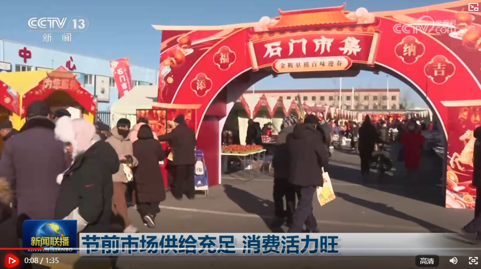 央视网消息(新闻联播):春节将至,各地市场供给充足,人们逛集市、买年货,消费活力旺盛。