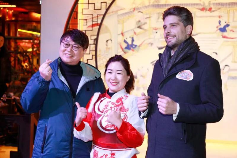 漫步广东会馆,驻华使节们沉浸于京剧文化的独特魅力。西青杨柳青古镇的新春灯会流光溢彩,意合堂会的中华传统武术刚劲有力,玉成号年画坊里,驻华使节们亲手体验年画拓印,在一抹抹喜庆红中,品味地道中国年、浓郁天津味。