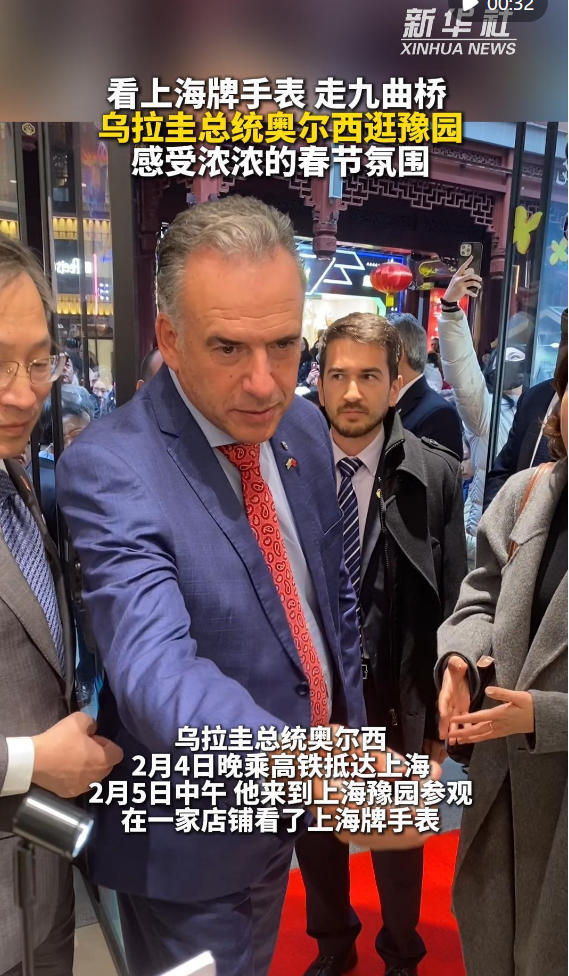 乌拉圭总统奥尔西2月4日晚乘高铁抵达上海,继续中国之行。2月5日中午,他来到上海豫园参观,感受浓浓的春节氛围。