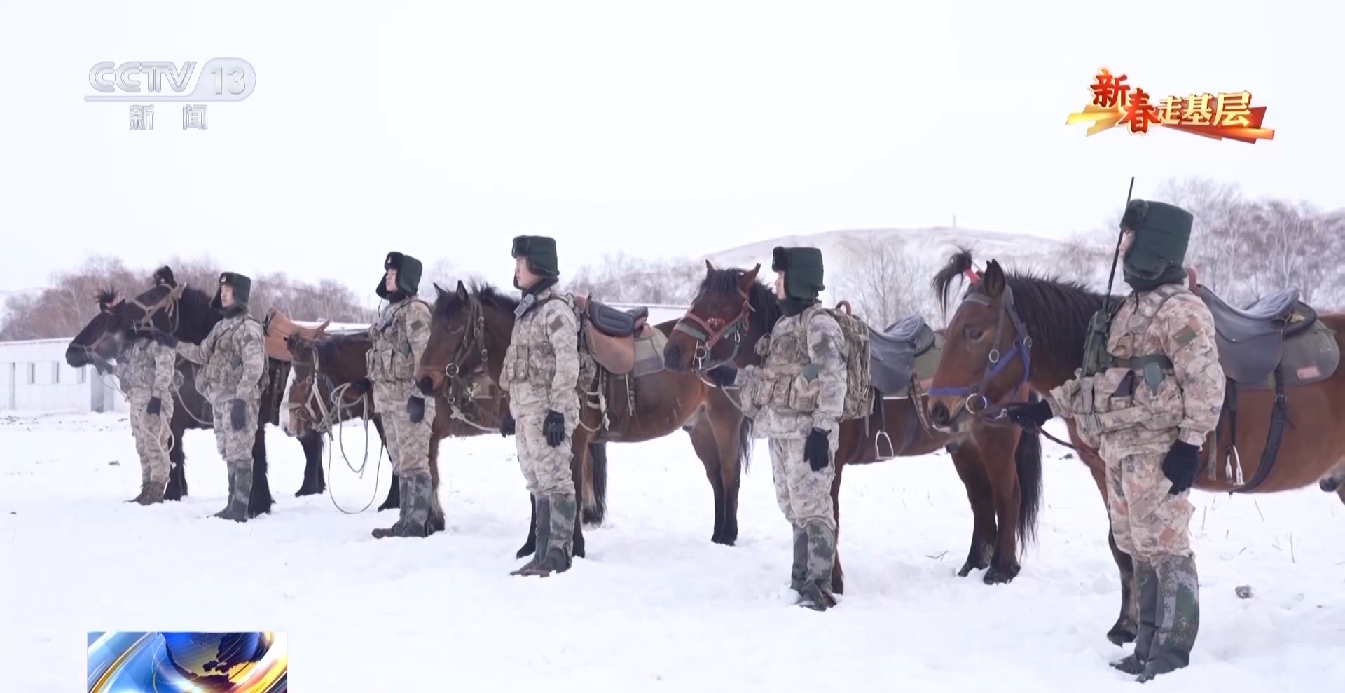 总台央视记者刘洁:官兵们正在进行骑马巡逻的准备,每匹军马都系上了鲜艳的红头绳,给冬日的边关带来了暖暖的年味。这些军马是官兵们巡逻途中最亲密的战友,今天他们再一次踏上边防巡逻路,用坚守迎接新春。
