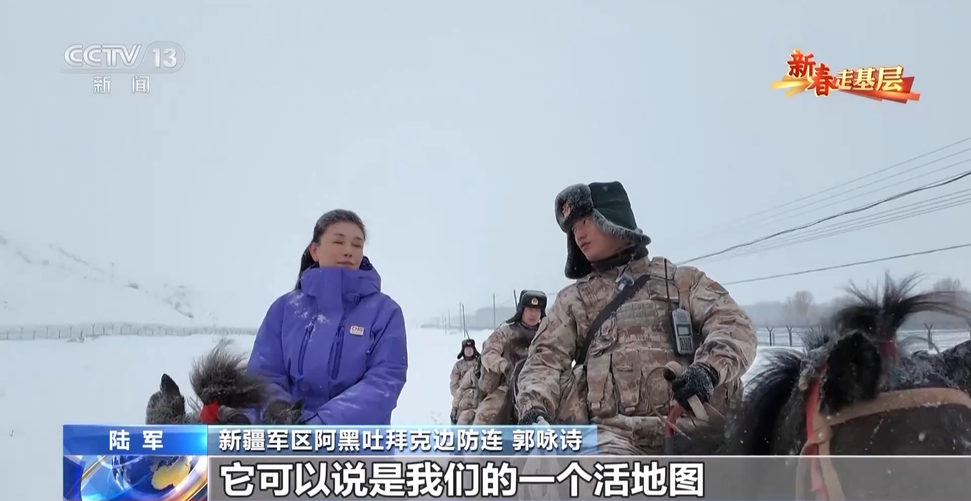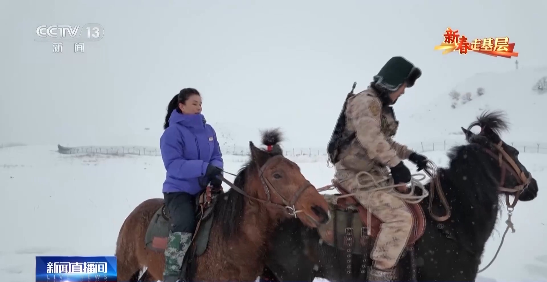 总台央视记者刘洁:第一次骑上马背,比想象的要高很多,而且颠簸得厉害,心里很紧张。双腿要时刻夹紧,双手要攥缰绳,才能在雪地上保持平稳。仅仅是跟随队伍缓行,不一会儿就会觉得腰腿酸软。可想而知,官兵们长年累月在复杂的地形中骑行巡逻,需要多么过硬的本领和毅力。