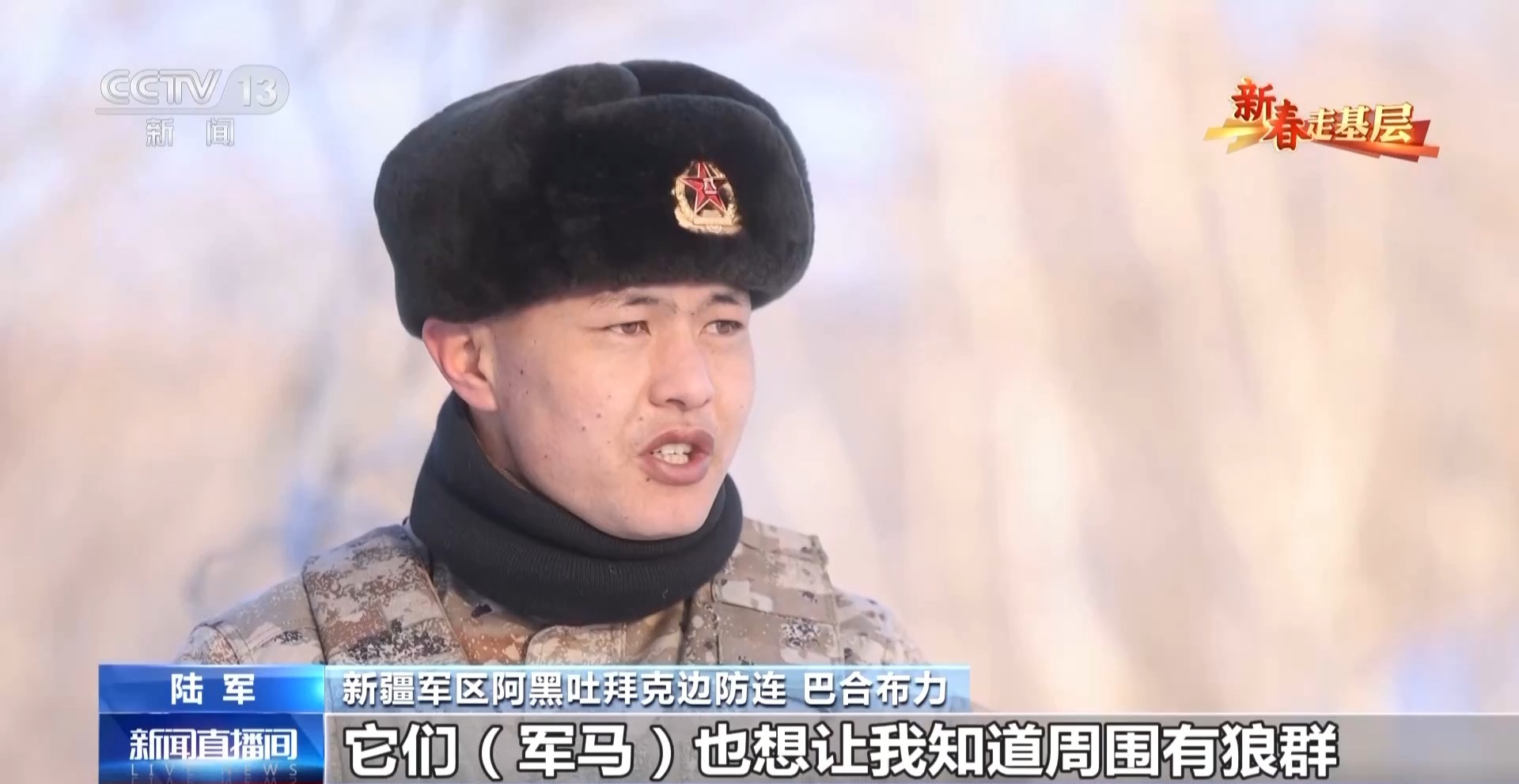 新疆军区阿黑吐拜克边防连巴合布力:当时也很慌,快天黑了,它们想让我知道周围有狼群,给了我一个信号,感觉它们在保护我一样,心里觉得很温暖、很感动。它们也是我们的战友,不能少一个,就算受伤了,必须得一起带回来。