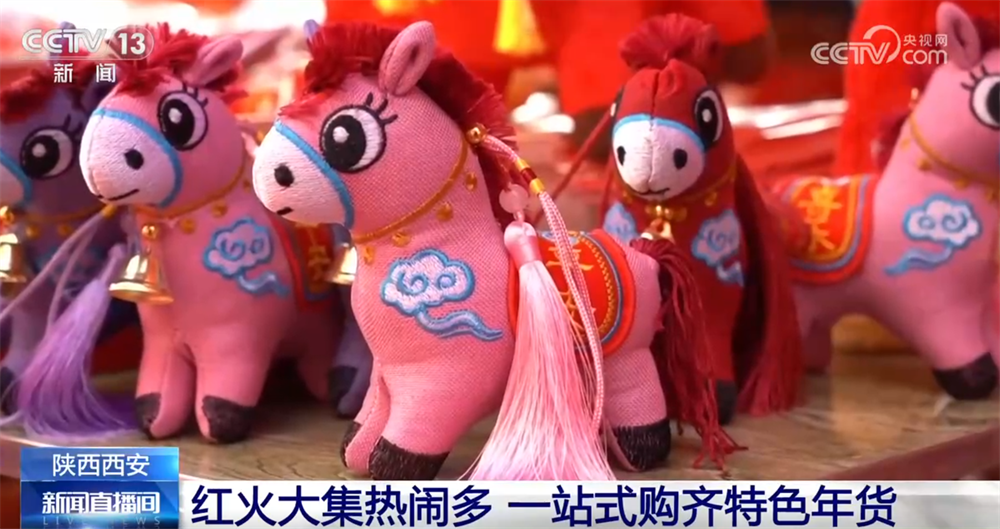 欢迎大家跟随我们的镜头来到西安市浐灞区的年货集市现场。大家看,集市已经完全被喜庆的红色和热闹的人群包围了。这里展出面积约1.6万平方米,每天都有超过1.5万人来这里购买年货。今年的年货节主打全面和实惠,从地道的腊牛羊肉、糕点干果到充满巧思的“马”年文创、非遗手作、年画对联,可以说是“一站式”购齐陕西年味。接下来去看看,西安的街坊邻里、八方来客都在这里买了什么年货。