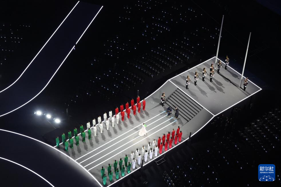 这是2月6日拍摄的开幕式上的升旗仪式。