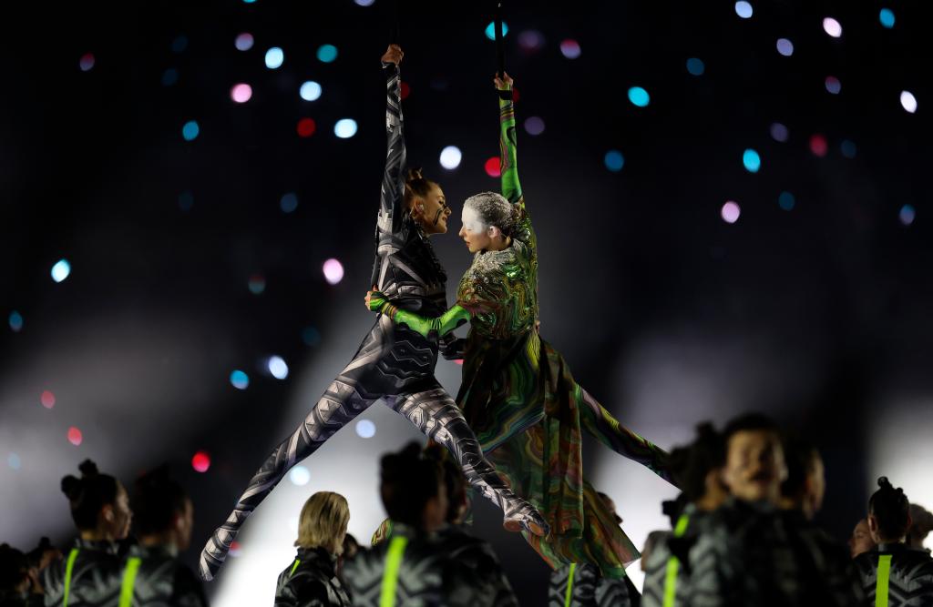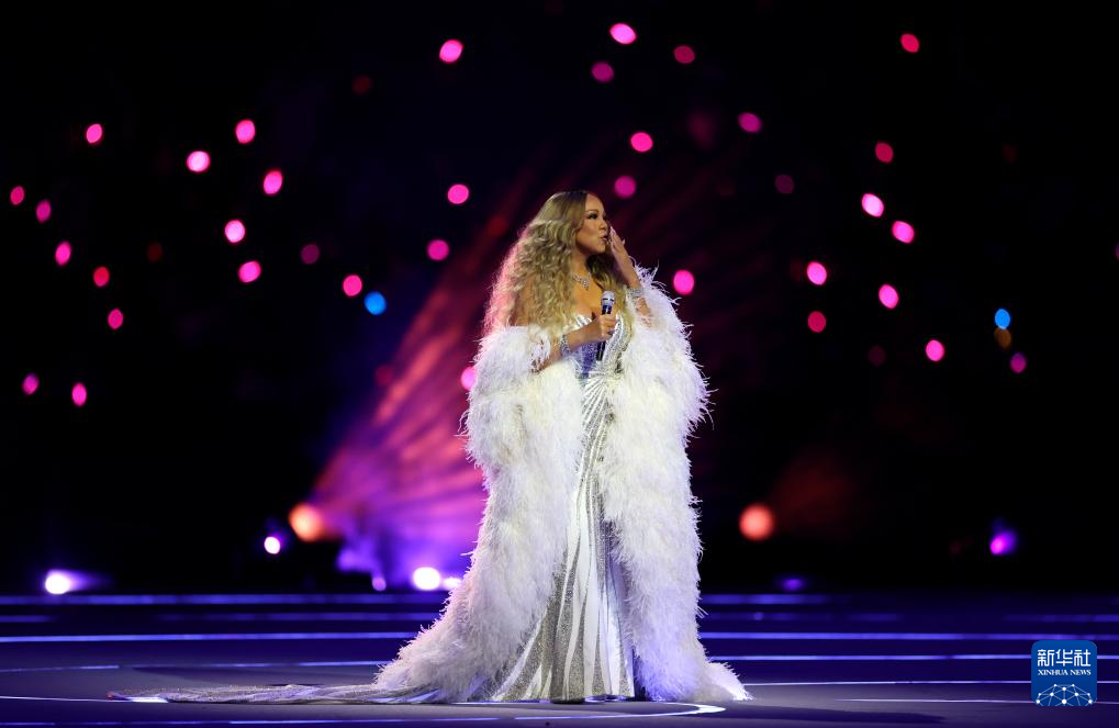 2月6日,歌手玛丽亚·凯莉在开幕式现场表演。