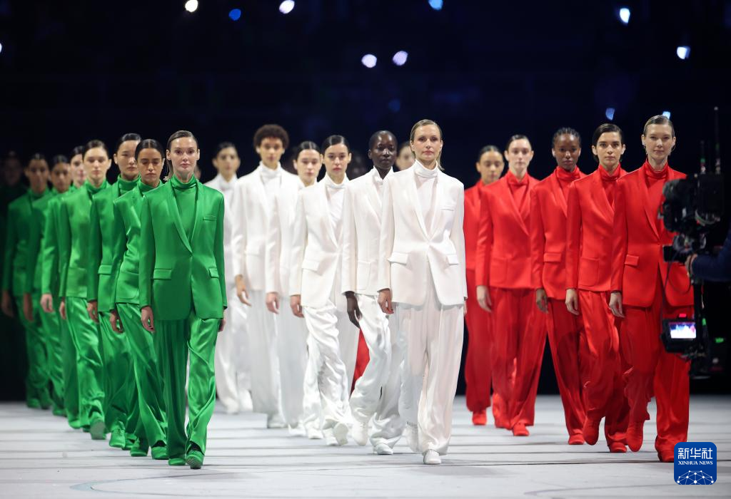 2月6日,模特身着代表意大利国旗颜色的服装入场。