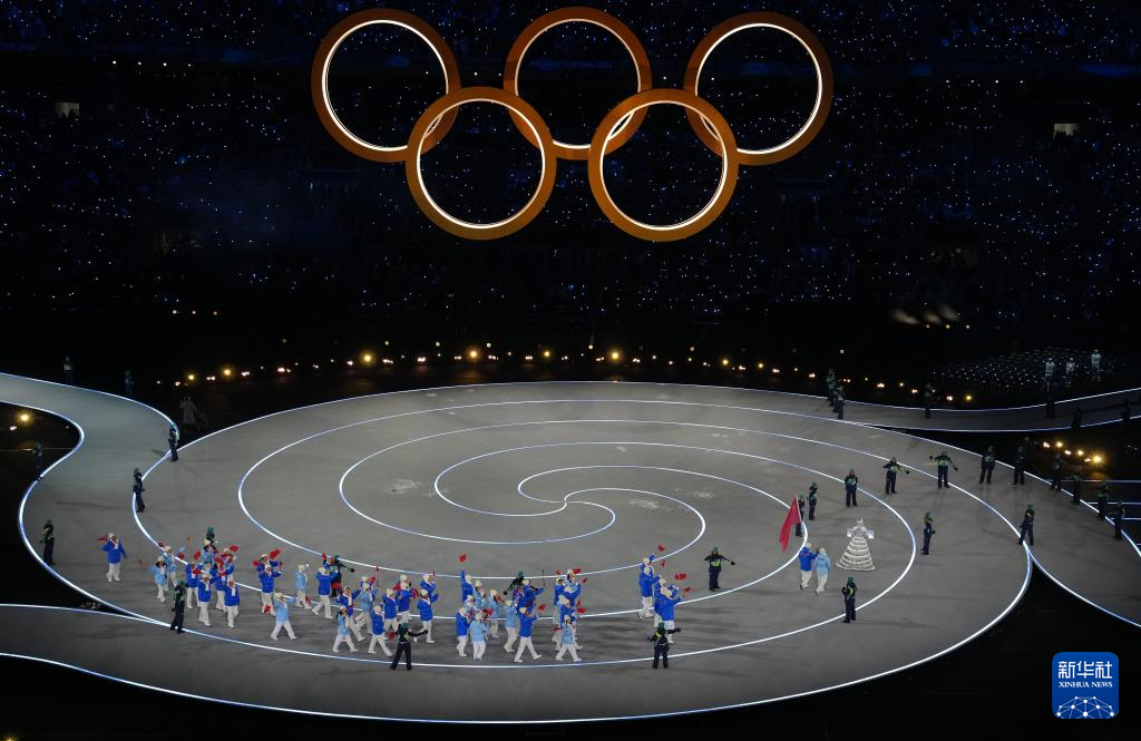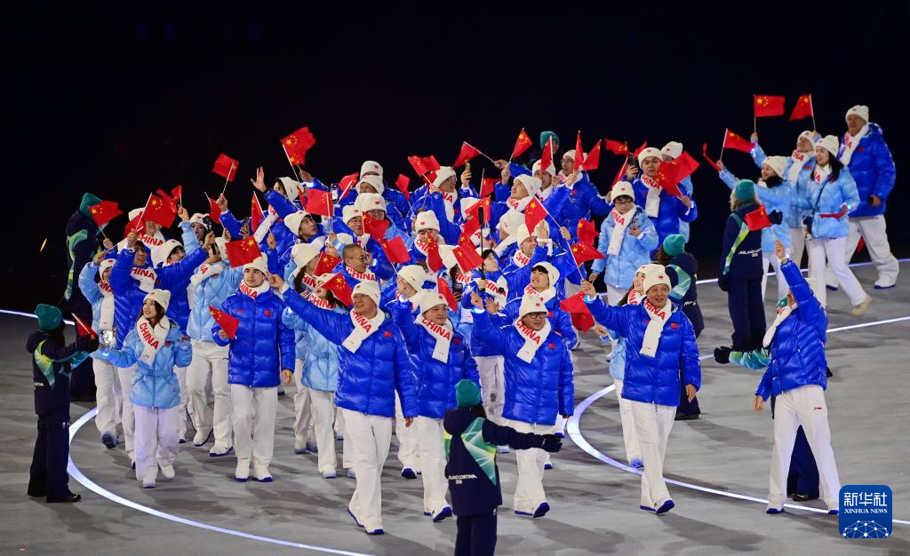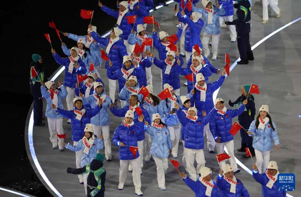 2月6日,中国体育代表团在开幕式上入场。
