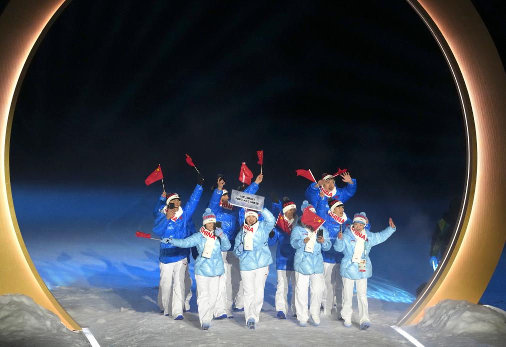 2月6日,中国体育代表团在利维尼奥参加入场仪式。