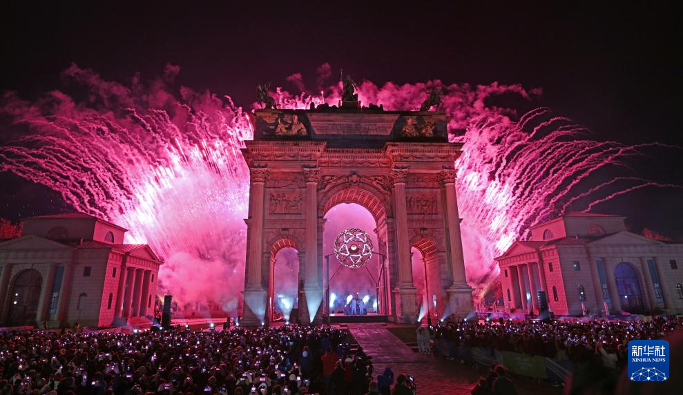 2月6日,在米兰和平拱门,主火炬被点燃。