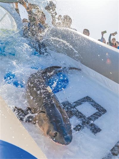 “如果直接进海,存活率会非常低。”郑跃平介绍,长江口是淡水、咸淡水和海水交错的过渡区域,幼鲟在这里,随着潮汐涨落逐步完成从淡水到海水的渗透压调节和育肥。完成生理适应的同时,它们在半年里可从“一指长”长到“一臂长”,体重增长几十倍,甚至上百倍。